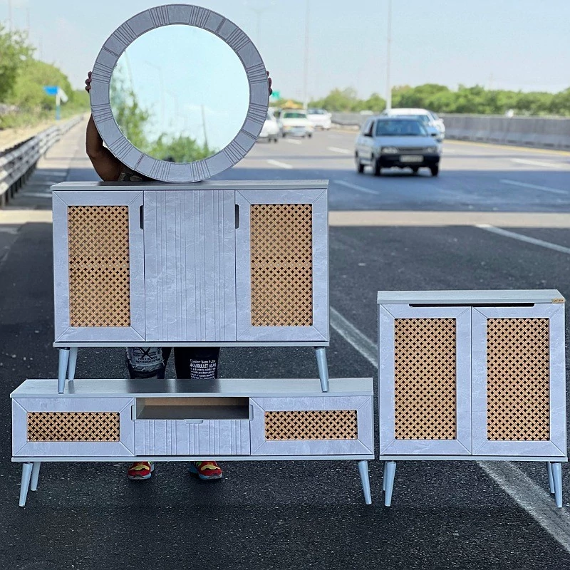 آینه و کنسول مدل درب حصیری ✔️ محصول سفارشی می باشد . ابعاد 120 در 90 ، تنوع رنگ بندی موجود . ✔️ ست کامل آینه ، کنسول ، میز تی وی ، جاکفشی موجود است . ✔️ ارسال مستقیم از تولیدی به سراسر ایران با تشکر از حسن انتخاب شما 🙏🏻🌷 گروه تولیدی و پخش صنایع چوبی نایس 💫
