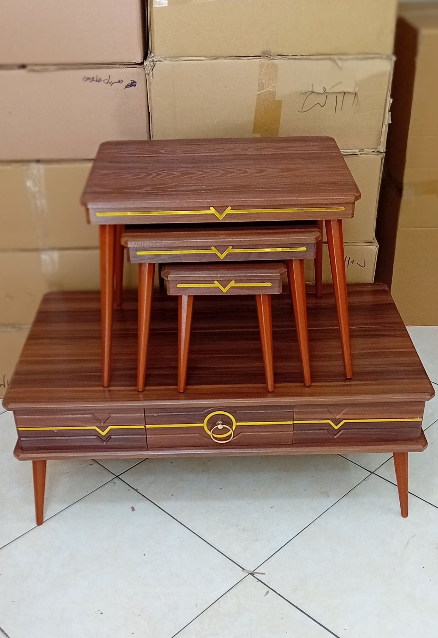 ✅️ میز پذیرایی بزرگ به ابعاد ۱۰۰ در ۶۰ ارتفاع ۴۰سانت به همراه ۳ عدد عسلی در سایز های متنوع .