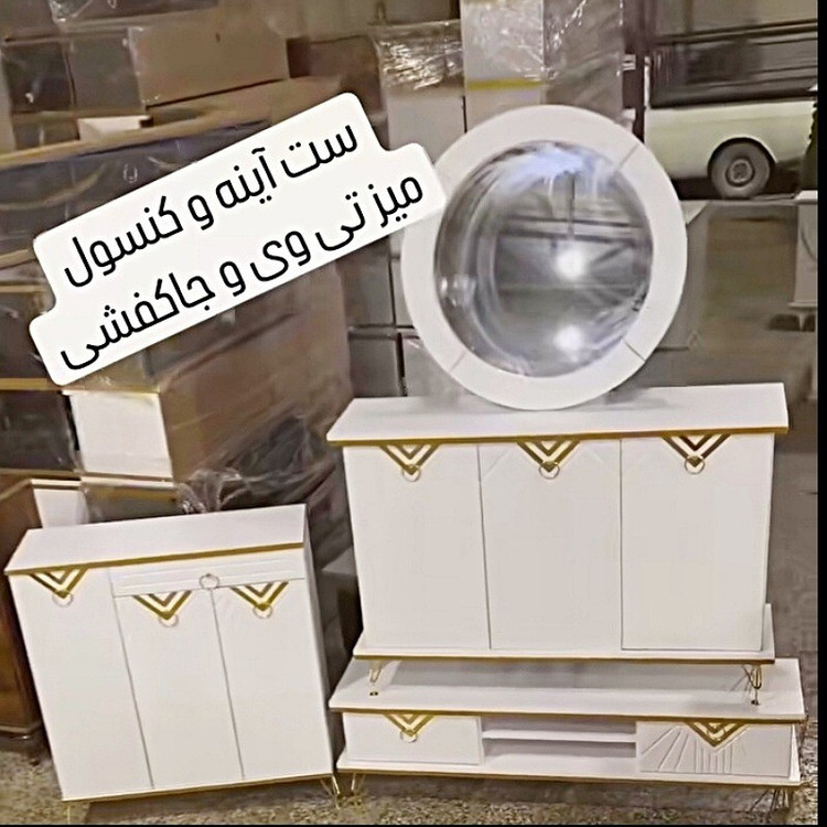 آینه و کنسول ، میز تی وی ، جاکفشی ۳ درب طرح الماس بدنه ملامینه ، درب ام دی اف ، روکش وکیوم محصول سفارشی میباشد . در تنوع رنگ بندی فروش بصورت ست و مجزا آینه مستطیل و گرد پایه فلزی و گلدونی بادتفاوت قیمت . ارسال مستقیم از تولیدی به سراسر کشور . با تشکر از اعتماد شما عزیزان 🌷🙏🏻
