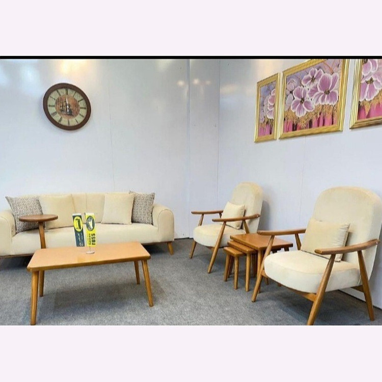 مبل راحتی مینیمال دسته چوبی ۷ نفره